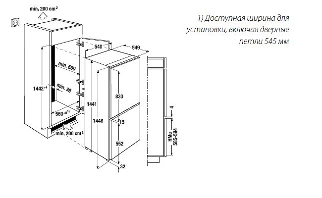 - Размеры ниши для встраивания Ш х В х Г ≈ 560 х 1446 х 550 мм.