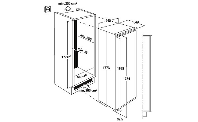 - Размеры ниши для встраивания Ш x В x Г ≈ 560 x 1.780 x 550 мм