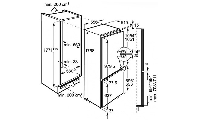 - Размеры ниши для встраивания Ш x В x Г ≈ 560 x 1.780 x 550 мм.