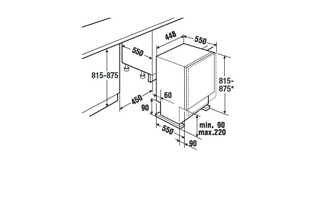 - Размеры ниши для встраивания Ш x В x Г ≈ 450 x 815-875 x 550 мм.