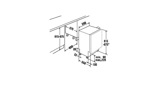 - Размеры прибора Ш x В x Г ≈ 598 x 815-875 x 550 мм
