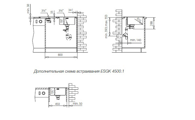 - В комбинации с мойкой ESGK 4500 возможно встраивание в базу шириной 80 см