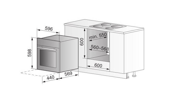 Размеры ниши для встраивания (ВхШхГ) 59.4х56-56.8х55