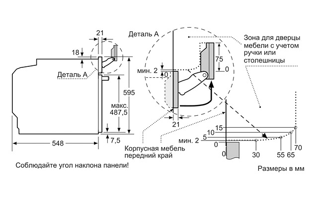 Размеры ниши для встраивания (ШхВхГ): 560 мм - 568 мм x 585 мм - 595 мм x 550 мм