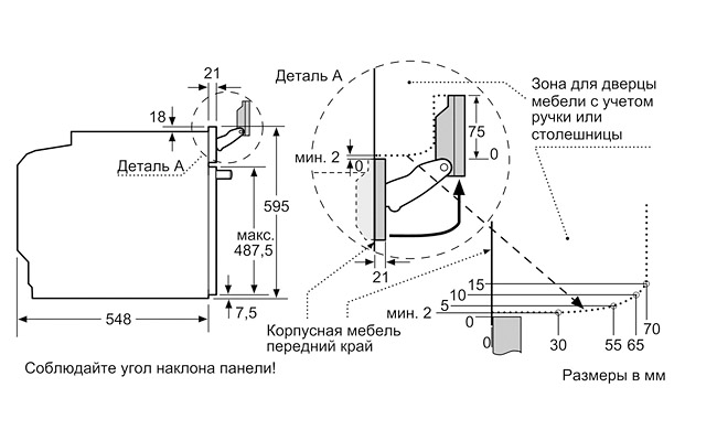 Размеры ниши для встраивания (ШхВхГ): 560 мм - 568 мм x 585 мм - 595 мм x 550 мм