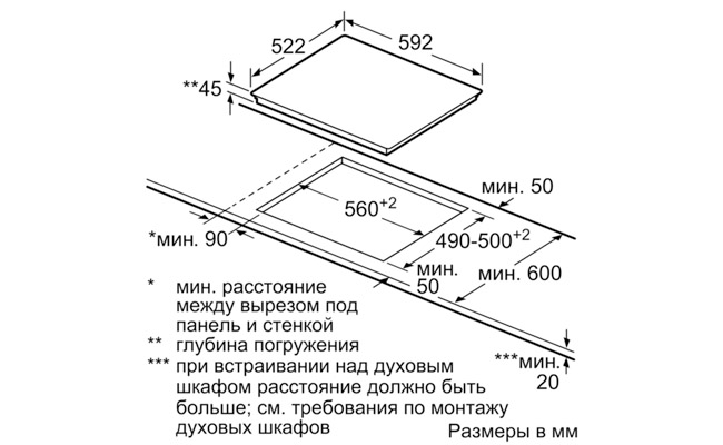 Конфорки: 1 x Ø 145 мм, 1.2 кВт; 1 x Ø 180 мм, 2 кВт; 1 x Ø 120 мм, 210 мм, 0.75 кВт, 2.2 кВт; 1 x Ø 120 мм, 210 мм, 0.75 кВт, 2.2 кВт