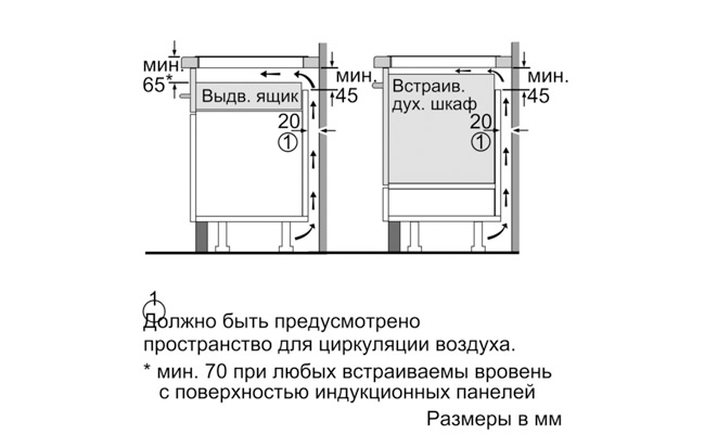 Размеры для встраивания 560 мм x 500 мм