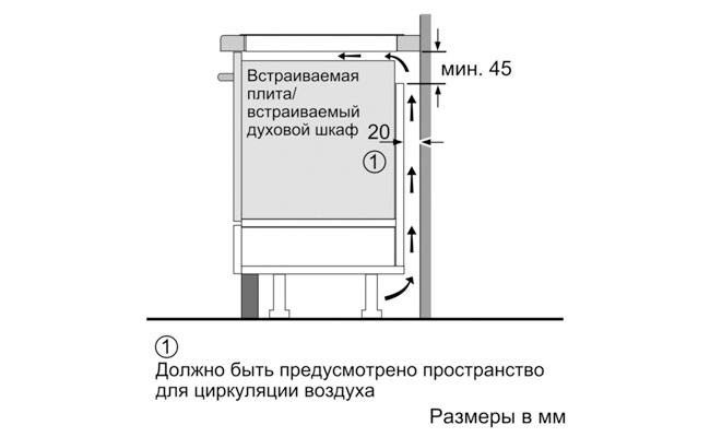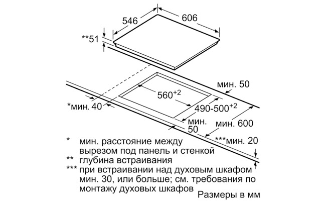 Размеры ниши для встраивания: 560 мм x 490 мм