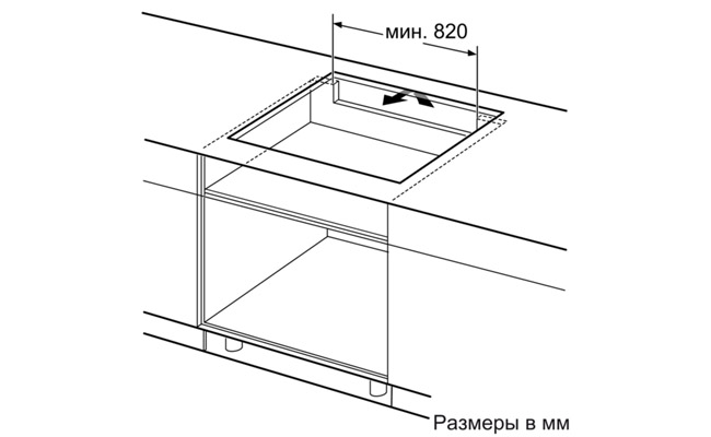 Размеры ниши для встраивания: 880 мм x 490 мм