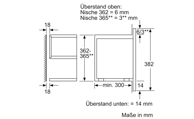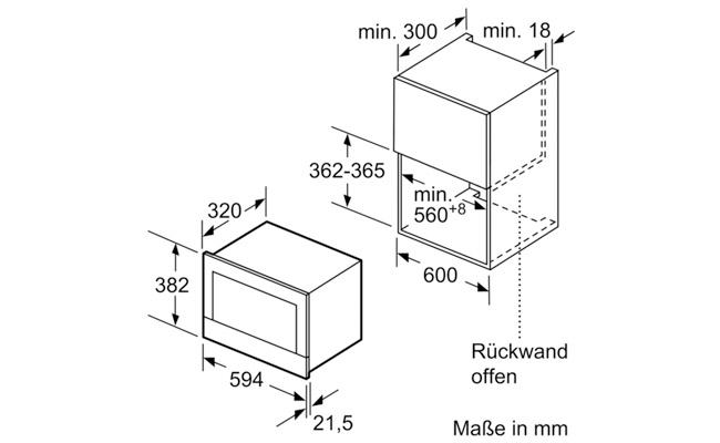Размеры ниши для встраивания (ШхВхГ): 560 мм - 568 мм x 362 мм - 382 мм x 300 мм