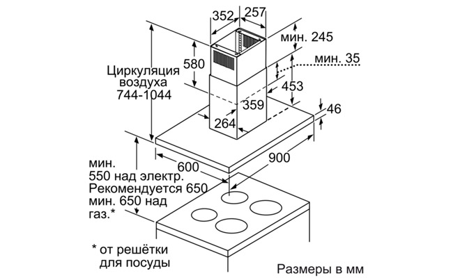 Для островного монтажа над варочной поверхностью