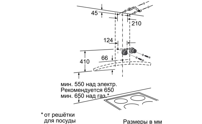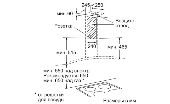 Для настенного монтажа над варочной поверхностью