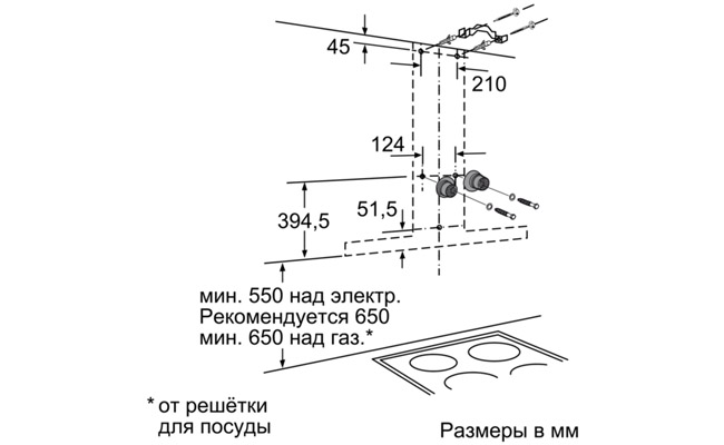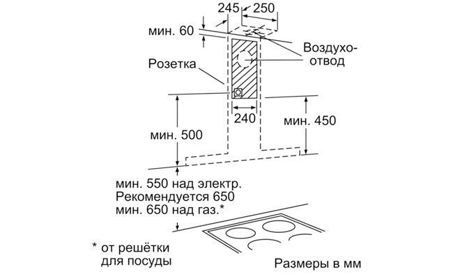 Для настенного монтажа над варочной поверхностью