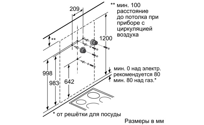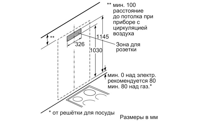 Для настенного монтажа над варочной поверхностью