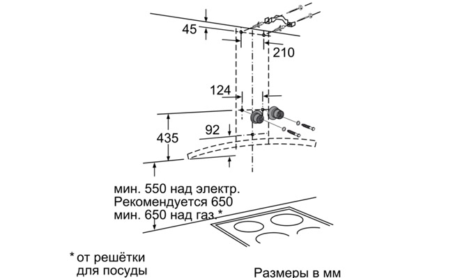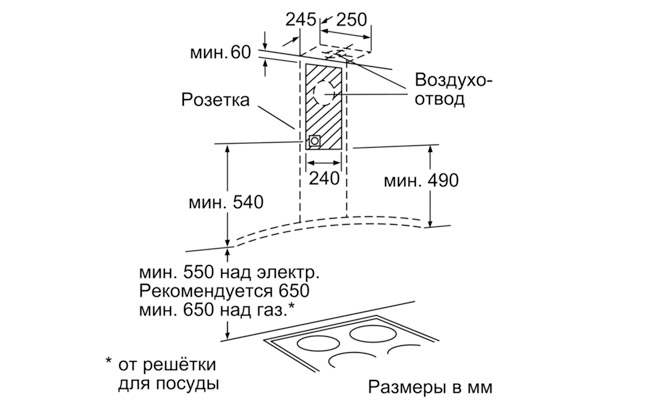 Для настенного монтажа над варочной поверхностью