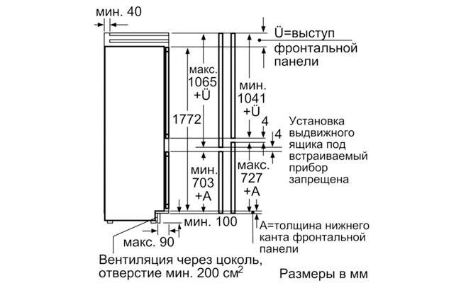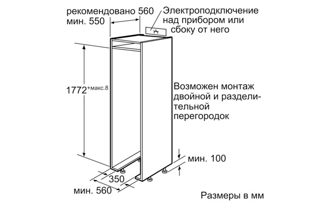 Размеры ниши: (В x Ш x Г): 177,5 cm x 56,0 cm x 55,0 cm