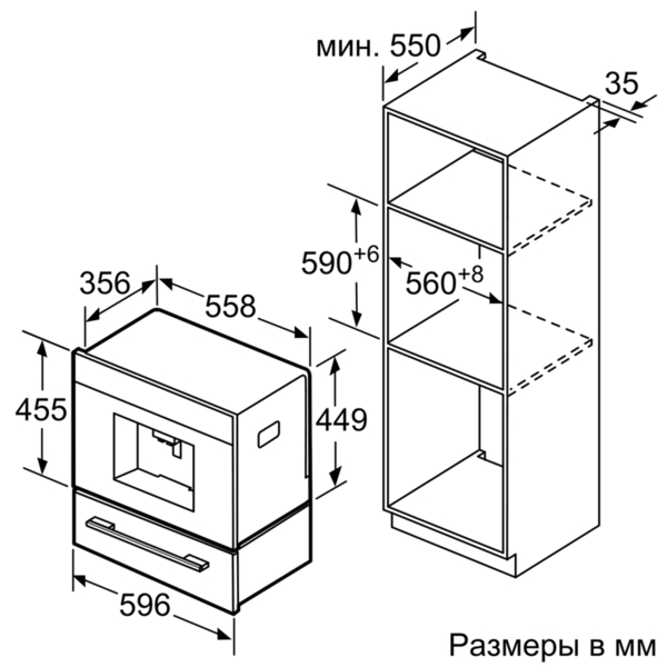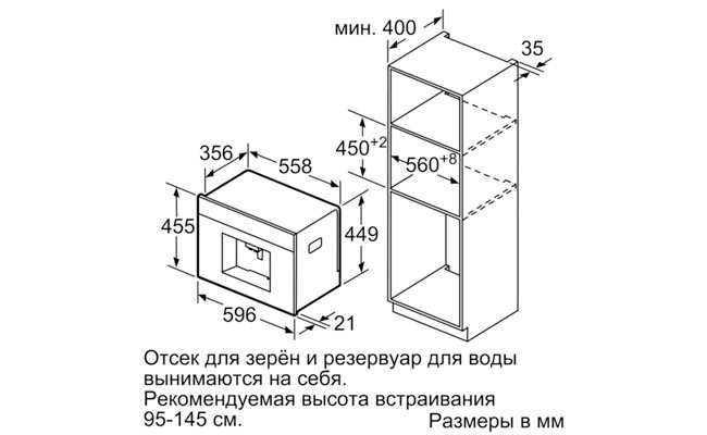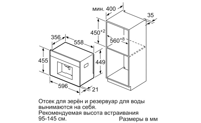 Встраиваемая кофемашина с функцией OneTouch – приготовление разнообразных кофейных напитков нажатием одной клавиши.