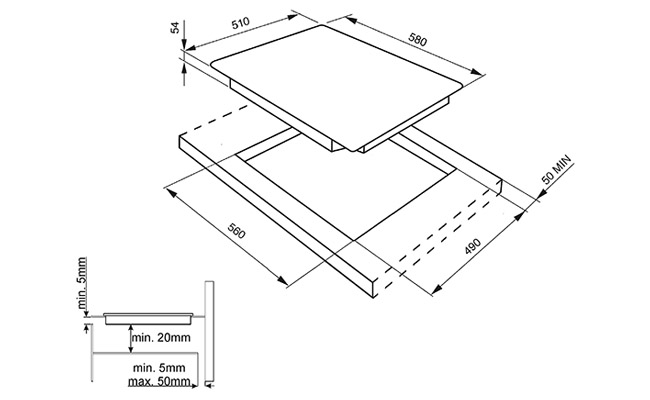 Индукционная варочная панель, 58 см, Multizone, скошенный край.