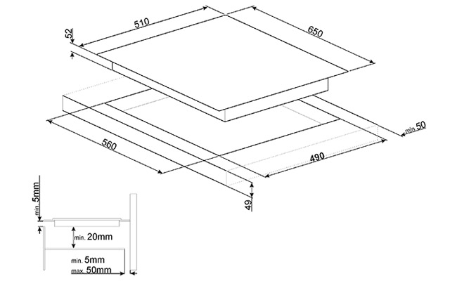 Индукционная варочная панель, 65 см, Multizone, скошенный край.