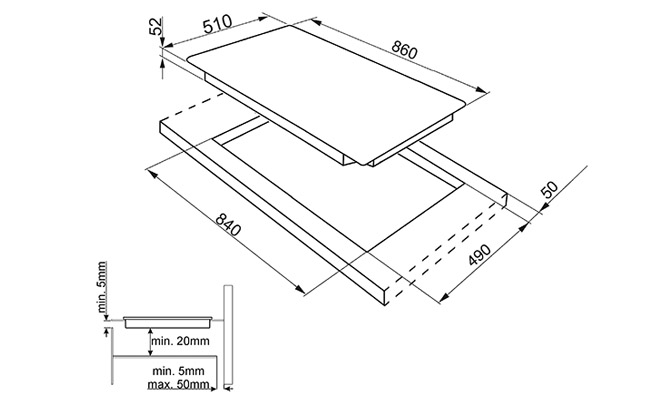 Индукционная варочная панель, 86 см, Multizone, скошенный край.
