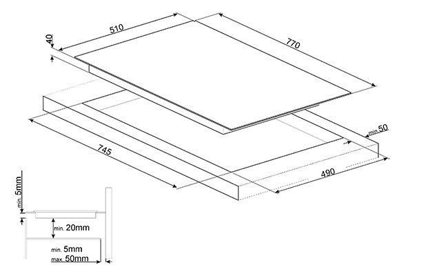Cтеклокерамическая варочная панель, 77 см, скошенный край.