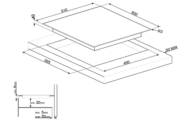 4 зоны нагрева Hi-Light: