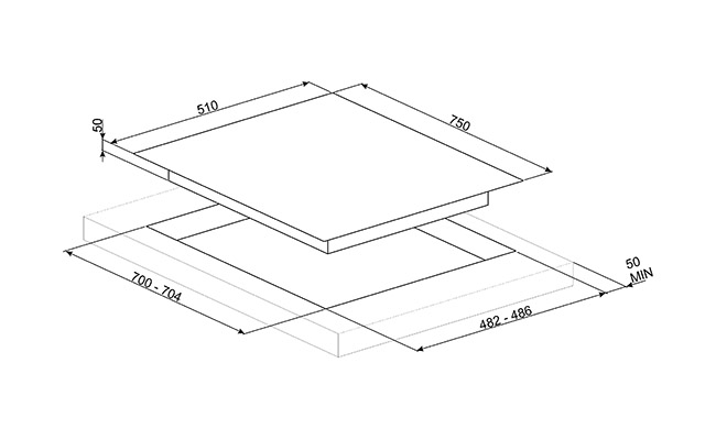 Газовая варочная панель, 75 см, черная стеклокерамика, прямой край. Серия Dolce Stil Novo.