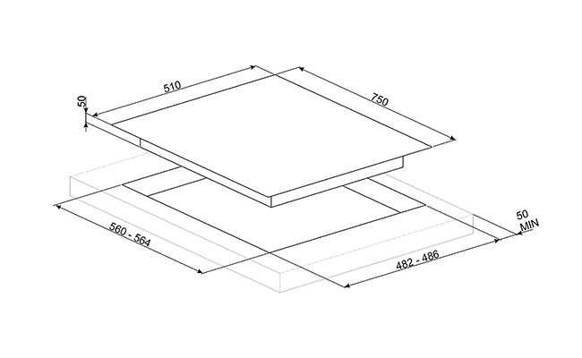 Газовая варочная панель, 75 cм. Серия Dolce Stil Novo.