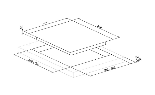 Газовая варочная панель, 60 см, черная стеклокерамика, прямой край. Серия Dolce Stil Novo.