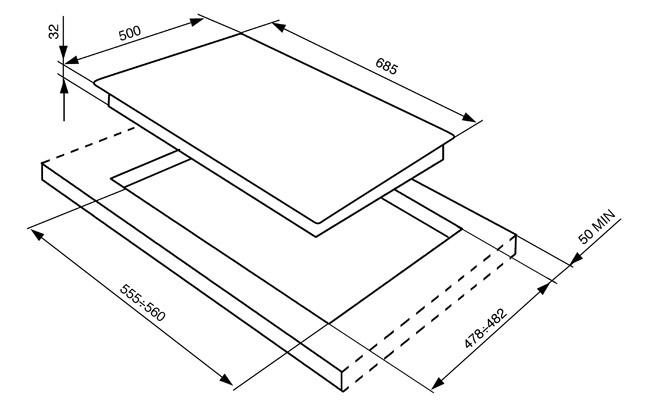 Газовая варочная панель, 70 см. Серия Cortina.