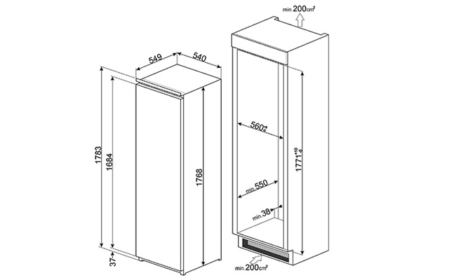 Встраиваемый однодверный холодильник без морозильного отделения Класс энергопотребления А++