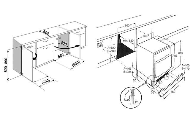 Встраиваемый холодильник, морозильное отделение сверху, монтаж под столешницу Класс энергопотребления А+