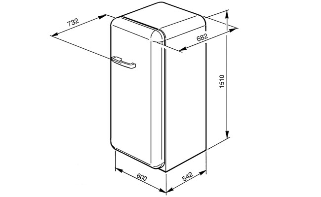 Отдельностоящий однодверный холодильник, стиль 50-х годов, 60 см. Класс энергопотребления А++.