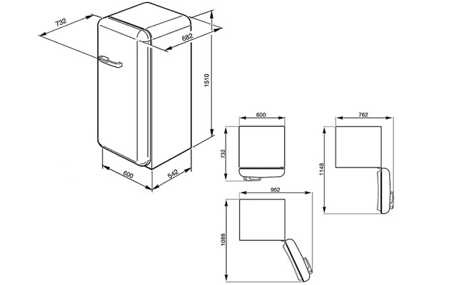 Отдельностоящая однодверная морозильная камера, стиль 50-х годов, 60 см. Класс энергопотребления А+.