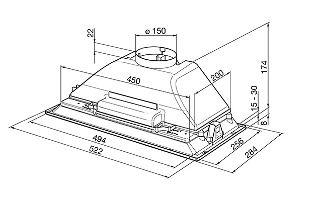 Встраиваемая вытяжка, 52,2 см,серебристая.
