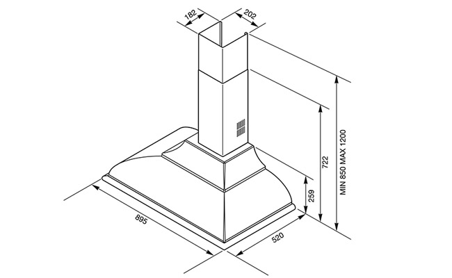 Вытяжка настенная декоративная, 89,5 см. Серия Cortina.