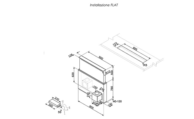 KITKDSNX - черное стекло, профиль нержавеющая сталь (Схема монтажа Installazione FLAT)