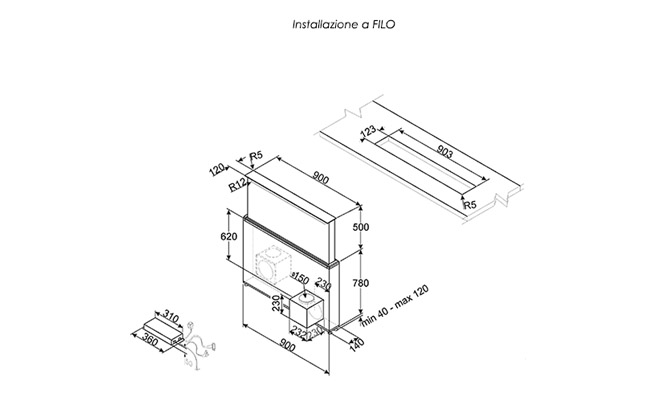 KITKDSNRA - черное стекло, медный профиль (Схема монтажа Installazione FLAT)