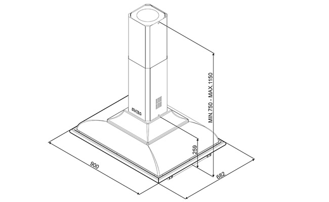 Вытяжка островная, 90 см. Серия Cortina.