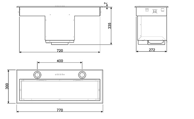 Встраиваемая вытяжка, 77 см, нержавеющая сталь.