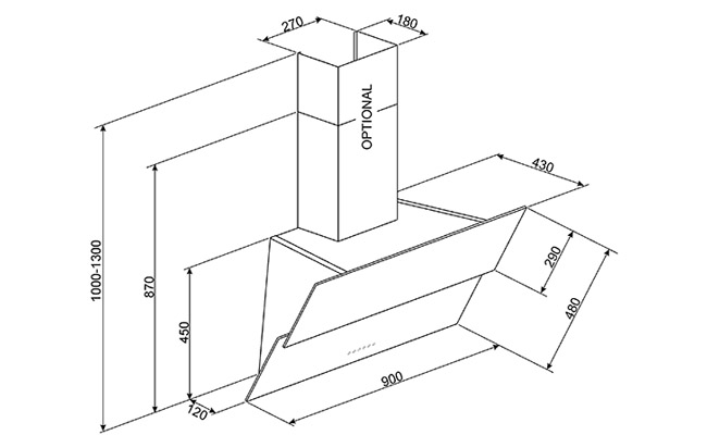 Вытяжка настенная KSVV90NX - черное стекло, профиль нержавеющая сталь.