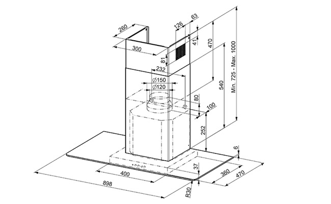 Вытяжка настенная, 89,8 см.