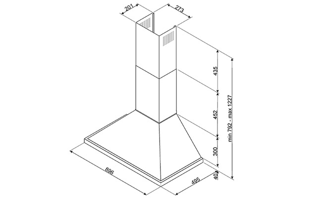 Вытяжка настенная KPF9X - нержавеющая сталь.