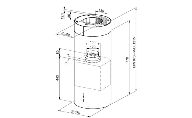 Вытяжка островная, 37 см, нержавеющая сталь.
