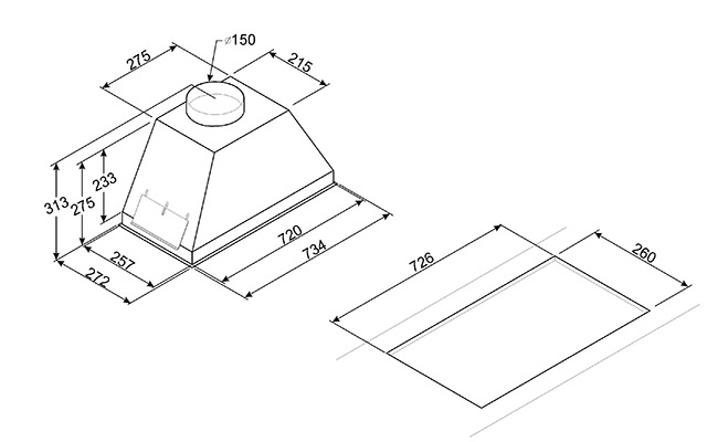 Диаметр воздуховода – 150 мм