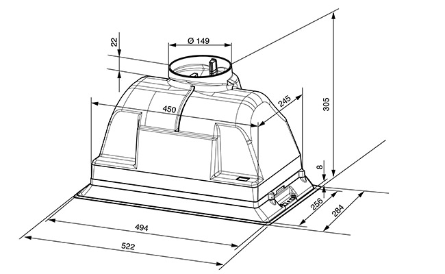 Встраиваемая вытяжка, 52,2 см, нержавеющая сталь.