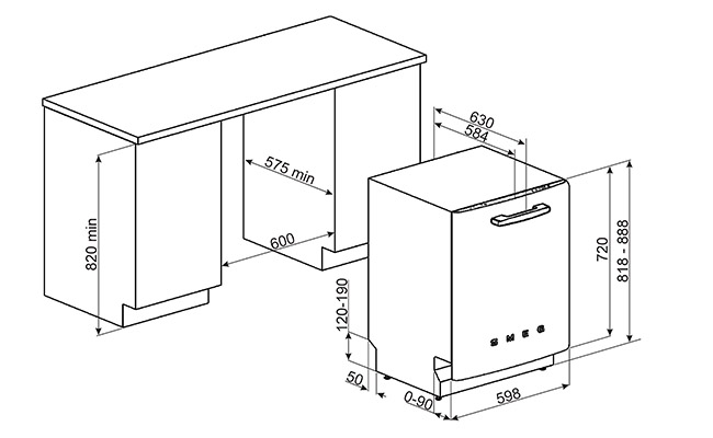 Стиль 50-х гг. Встраиваемая посудомоечная машина, 60 см. Класс энергопотребления А+++.