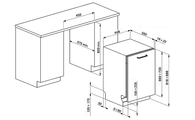 Полностью встраиваемая посудомоечная машина, 45 см, класс А++А.