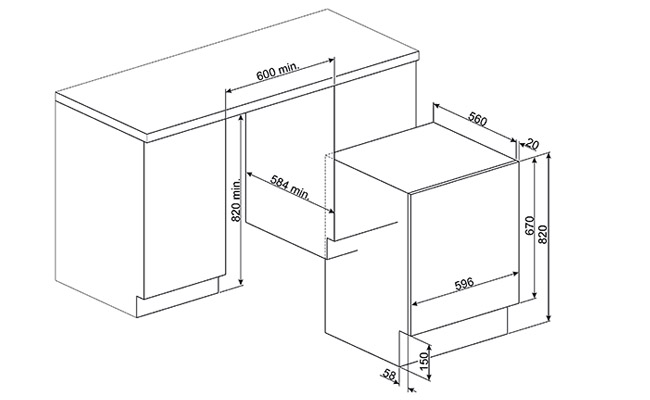 Встраиваемая стиральная машина с сушкой, 60 см, класс BА, цвет белый. Загрузка 7/4 кг, отжим до 1400 об./мин.