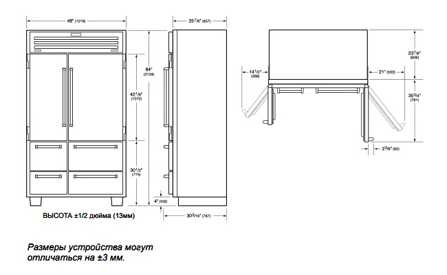 Два варианта установки: встраиваемый холодильник и отдельно стоящий (необходим набор для установки отдельно стоящей модели)